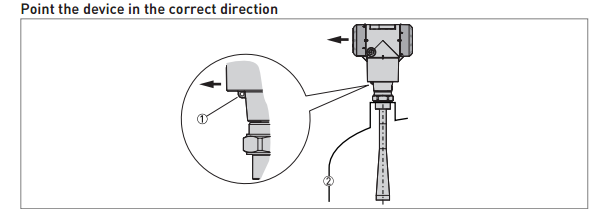 - Point the device in the correct direction by Pointing the tag hole on the housing in the direction of the nearest tank wall.